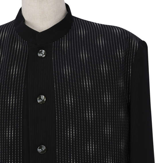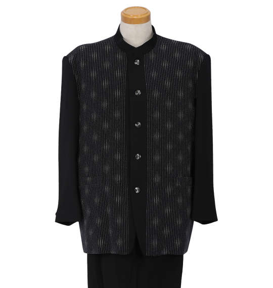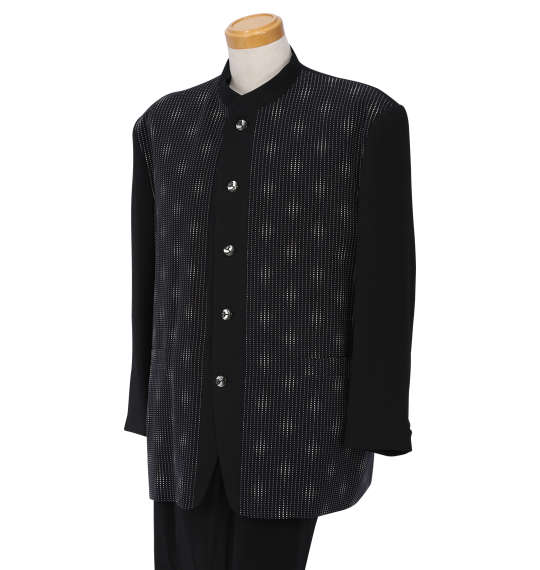 | マオカラースーツです。 ジャケット:背抜き/ノーベント/胸・サイド・内ポケット有 パンツ:前開きファスナー/サイド・バックポケット有/ウエストシャーリング(調節紐なし)/ツータック/ベルトループ5本 日本製 |