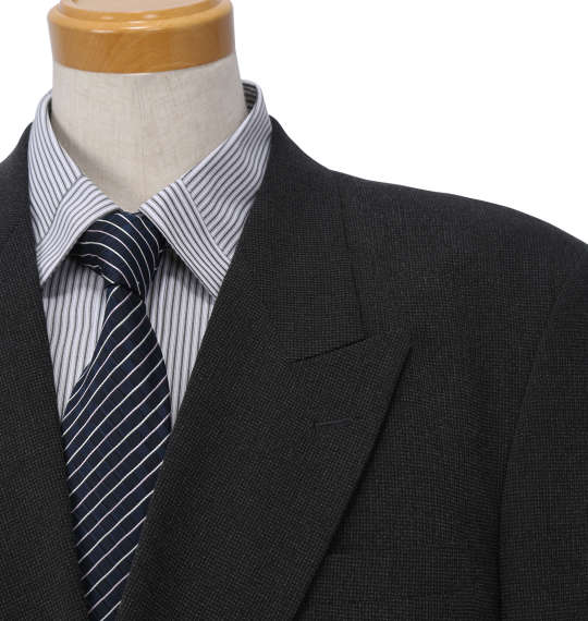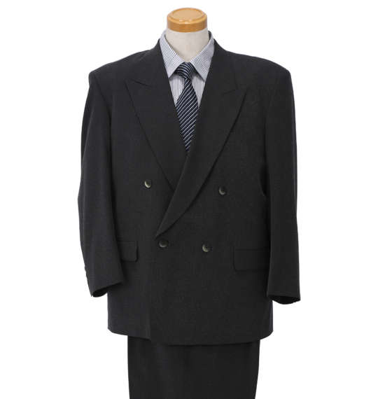 | スーツです。 ジャケット:背抜き/ノーベント/胸・サイド・内ポケット有/フラワーホール パンツ:前開きファスナー/サイド・バックポケット有/ツータック/ベルトループ13本/ウエスト滑り止め 日本製 |