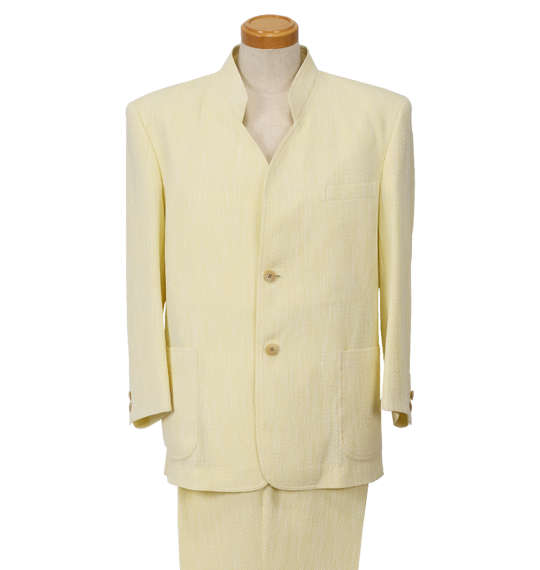 | シングル2ツ釦スーツです。 ジャケット:背抜き/ノーベント/胸・サイド・内ポケット パンツ:前開きファスナー/ツータック/サイド・バックポケット/滑り止め/ベルトループ9本 日本製 |