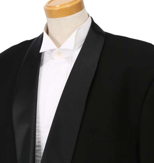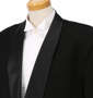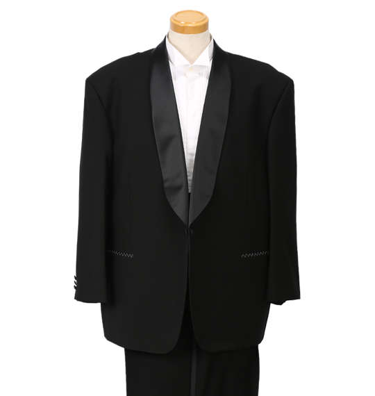 | タキシードです。 ジャケット:総裏/ノーベント/胸・サイド・内ポケット パンツ:前開きファスナー/ツータック/サイド・バックポケット/ベルトループ8本 |