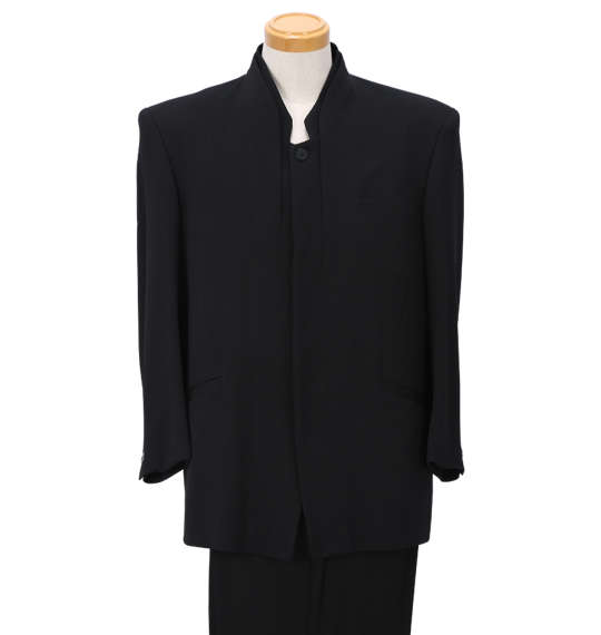 | デザインスーツです。 ジャケット:背抜き/ノーベント/胸・サイド・内ポケット有 パンツ:前開きファスナー/サイド・バックポケット有/ツータック/ベルトループ11本 日本製 |