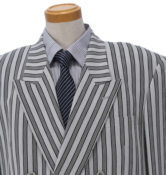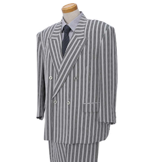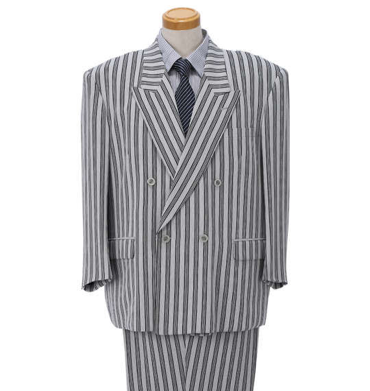 | スーツです。 ジャケット:背抜き/ノーベント/胸・サイド・内ポケット有 パンツ:前開きファスナー/サイド・バックポケット有/ツータック/ウエスト滑り止め/ベルトループ13本 日本製 |