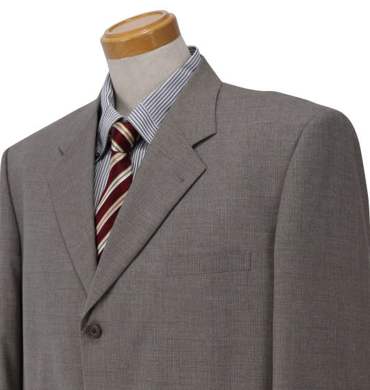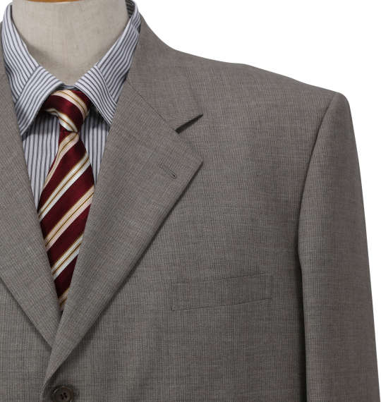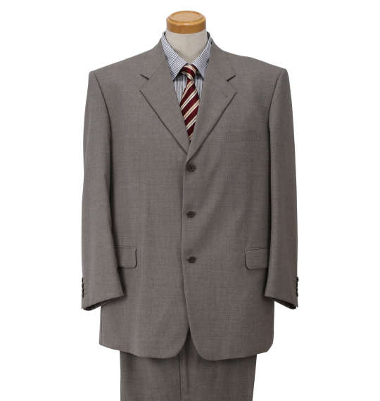| スーツ(2パンツ)です。 ジャケット:背抜き/ノーベント/胸・サイド・内ポケット有 パンツ:前開きファスナー/サイド・バックポケット有/ツータック/ベルトループ8本/ツーパンツ |
