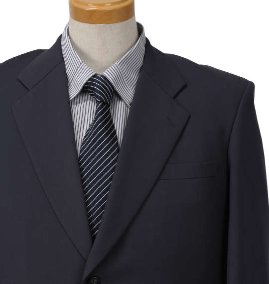 | スーツ(2パンツ)です。 ジャケット:背抜き/ノーベント/胸・サイド・内ポケット有/フラワーホール パンツ:前開きファスナー/サイド・バックポケット有/ツータック/ウエスト滑り止め/ベルトループ9本 |