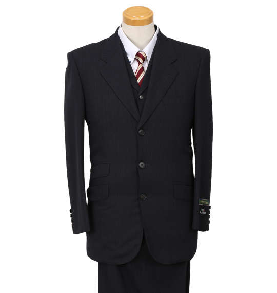 | スーツです。 ジャケット:総裏/サイドベンツ/胸・サイド・内ポケット有/フラワーホール ベスト:総裏/スリット/胸・サイドポケット有 パンツ:前開きファスナー/サイド・バックポケット有/ツータック/ベルトループ8本 日本製 |