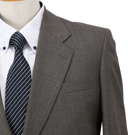 | スーツ(2パンツ)です。 ジャケット:背抜き/センターベント/胸・サイド・内ポケット有/フラワーホール パンツ:前開きファスナー/サイド・バックポケット有/ツータック/ベルトループ7本/ウエスト滑り止め |