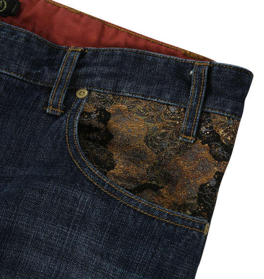 | デニムパンツです。 前開きファスナー/ベルトループ9本/刺繍/サイド・バック・コインポケット/別布切り替え |