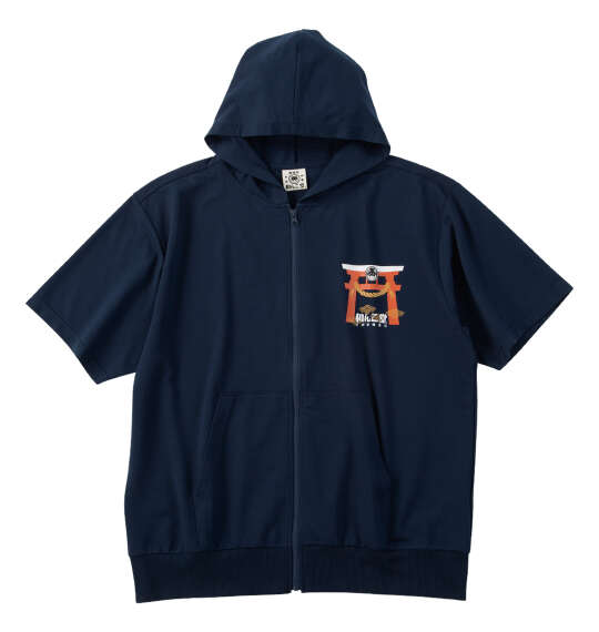 黒柴印和んこ堂の富士山半袖フルジップパーカーです。鳥居・富士山・しめ縄をあしらい、神聖なモチーフの中に黒柴を祀り上げた、縁起物尽くしのインパクトあふれるデザイン。 思わず目を引くキャッチーさと、どこかシュールな遊び心を兼ね備え、周囲の視線を集める存在感抜群の一着です。 フルジップ/サイドポケット/プリント/フード(調節ひも無)/リブ(裾)/裏毛 |