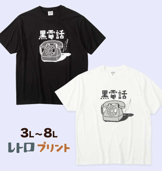 | レトロプリントの黒電話半袖Tシャツです。 プリント |