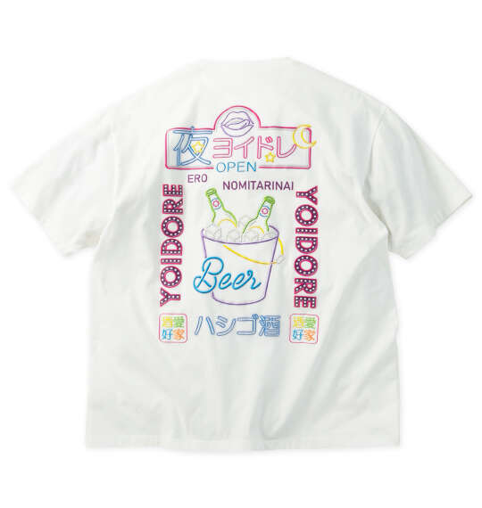 | YOIDOREのニューボトル半袖Tシャツです。 ネオン看板調のグラフィックを、発泡プリントでレイアウトした目を引く一着。 プリント(ラバー・発泡)/ワッペン/ステッカー付 |
