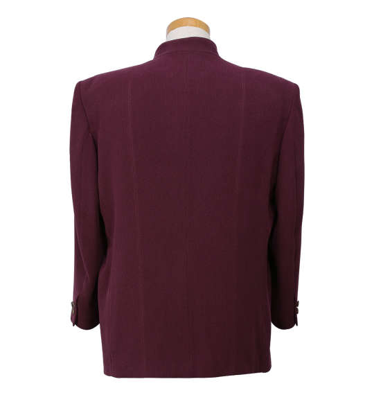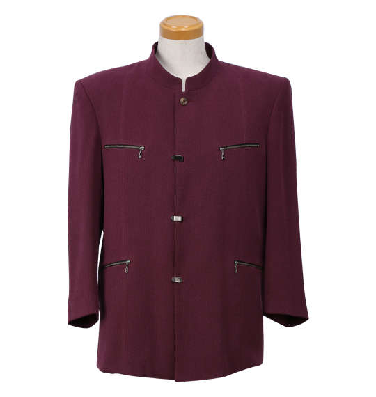 | デザインマオカラースーツです。 ジャケット:総裏/ノーベント/胸・サイド・内ポケット有 パンツ:前開きファスナー/サイド・バックポケット有/ツータック/ベルトループ11本 |