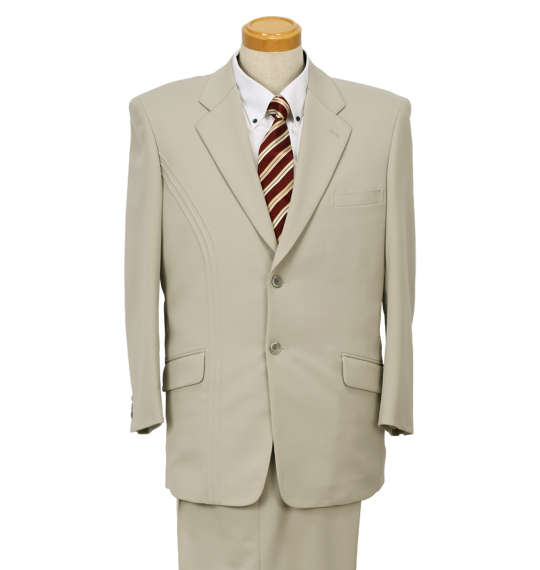 | スーツです。 ジャケット:総裏/ノーベント/胸・サイド・内ポケット/フラワーホール パンツ:前開きファスナー/ツータック/サイド・バックポケット/滑り止め/ベルトループ9本 日本製 |