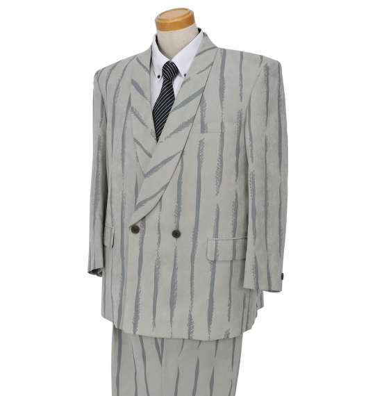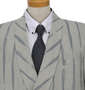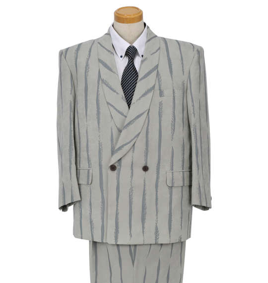 | スーツです。 ジャケット:総裏/ノーベント/胸・サイド・内ポケット有 パンツ:前開きファスナー/サイド・バックポケット有/ツータック/ベルトループ13本/ウエスト滑り止め |