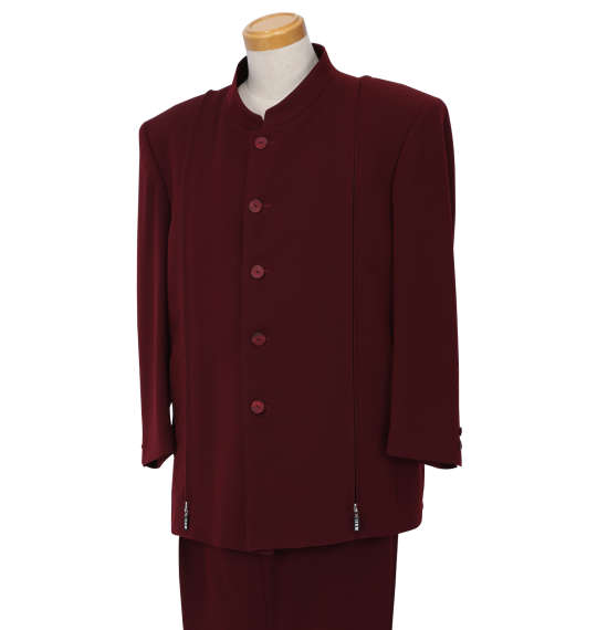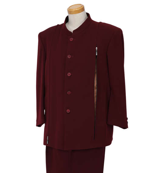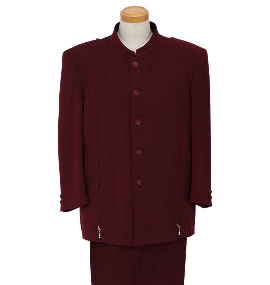 | スーツです。 ジャケット:総裏/ノーベント/サイド・内ポケット有 パンツ:前開きファスナー/サイド・バックポケット有/ツータック/ベルトループ15本/ウエスト滑り止め |