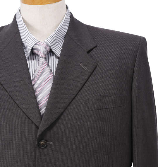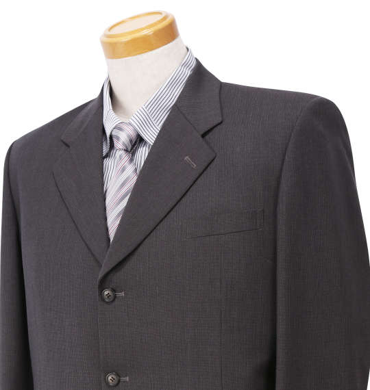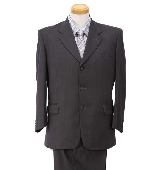 | スーツ(2パンツ)です。 ジャケット:背抜き/ノーベント/胸・サイド・内ポケット有 パンツ:前開きファスナー/サイド・バックポケット有/ツータック/ベルトループ8本/ウエスト滑り止め/ツーパンツ |