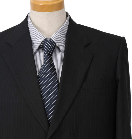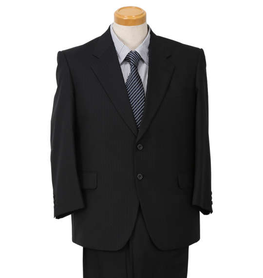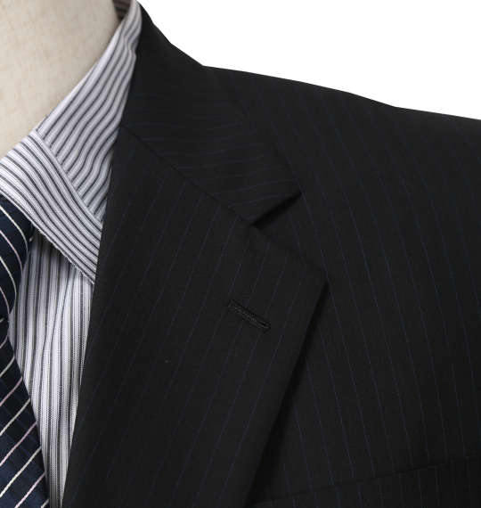 | スーツ(2パンツ)です。 ジャケット:背抜き/ノーベント/胸・サイド・内ポケット有/フラワーホール パンツ:前開きファスナー/サイド・バックポケット有/ツータック/ベルトループ8本 |