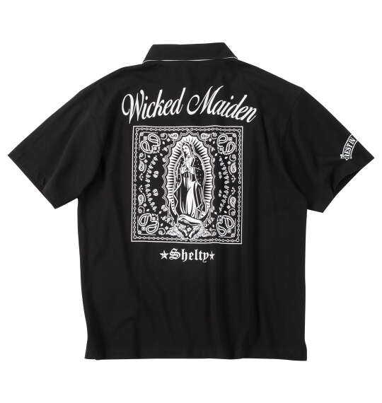 NEWSHELTY 鹿の子刺繍&マリアプリント半袖ポロシャツ