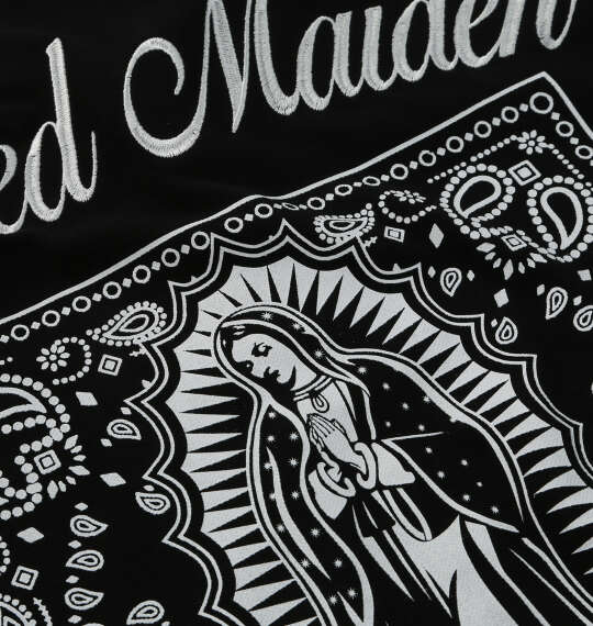 聖母マリアのモチーフをプリントと刺繍で落とし込み、コーディネートの主役になる一着です。