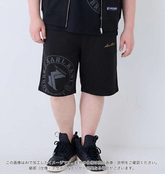 KARL KANIのスウェットハーフパンツです。【サイズについて】 サイズ表のウエストサイズは適応範囲となります。 前閉じ/ウエストシャーリング(調節ひも有)/サイド・バックポケット/プリント/刺繍/裏毛 |