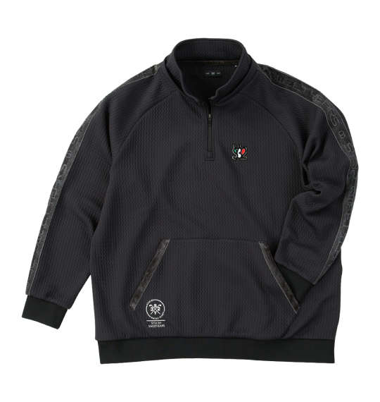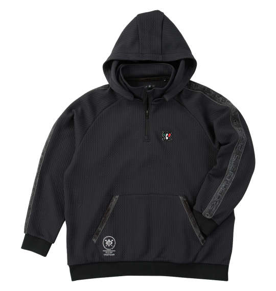 | フーディーです。 フード(調節ひも有・取り外し可)/ハーフジップ/カンガルーポケット/裾スナップボタン(バック左サイド)/リブ(裾・袖口)/ラグラン袖/刺繍/プリント/保温 |