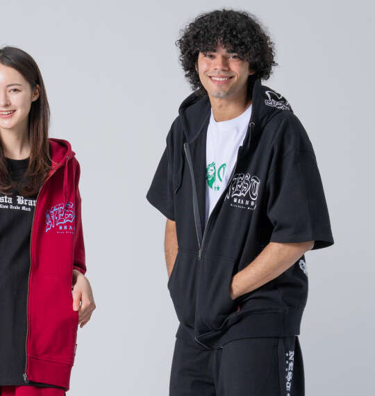 NESTA BRANDの半袖フルジップパーカーです。フルジップ/フード(調節ひも有)/サイドポケット/プリント/リブ(裾)/裏毛 |