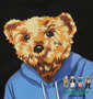 スケートボードスタイルのテディベアをプリントした、カッコよさと可愛らしさを併せ持つデザイン。