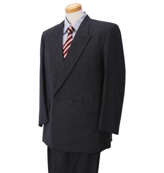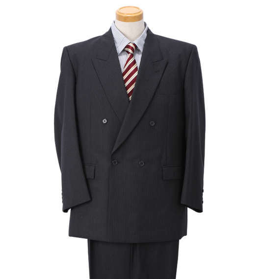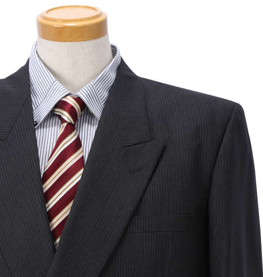 | スーツ(2パンツ)です。 ジャケット:背抜き/ノーベント/胸・サイド・内ポケット有/フラワーホール パンツ:前開きファスナー/サイド・バックポケット有/ツータック/ベルトループ8本/ツーパンツ |