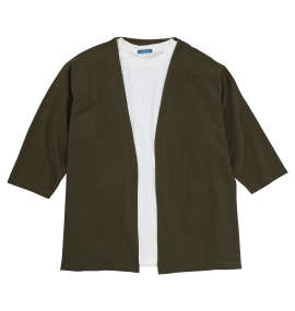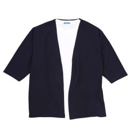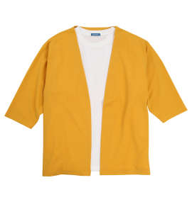 ふくれジャガードトッパー七分袖カーディガン+天竺半袖Tシャツ