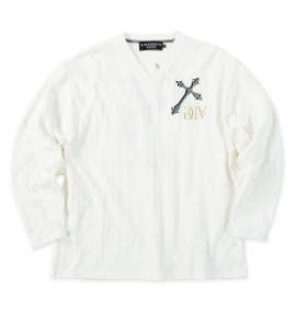刺繍ブロックジャガード長袖VネックTシャツ