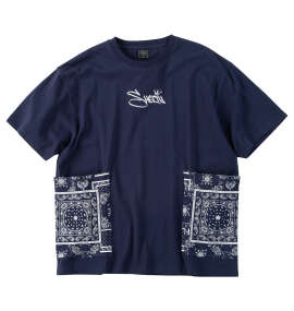 天竺刺繍バンダナ柄ポケット付半袖Tシャツ